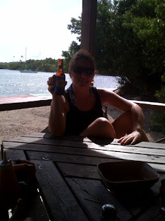 The restaurant was the families house and as we ate our dinner off styrofom plates they watched indian soap operas on the TV over our heads. DE BIG FISH is the restaurant close to where we are anchored they had a live R&B band playing the other afternoon. The lead guitarist/singer is a chiropractor from Vancouver who has relocated to Grenada. The band was great! They played a lot of Muddy Waters, and Stevie Ray Vaughn. People were grooving and dancing. There has also been a lot of jumping off the boat and swimming, especially by the kids.